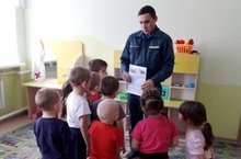 Безнең бакчабызда Сарман янгын күзәтчелегеннән Быренков Р.Н. булып китте. Ул балаларга Яңа ел бәйрәме вакытында янгын куркынычсызлык кагыйдәләрен үтәргә, янгын чыккан очракта өйдә үзләрен ничек тотарга, ут, пиротехникалар белән уйнамаска кирәклеген искәртте. \Сегодня наши воспитанники встретились с пожарным противопожарной охраны Сармановского района. Быренков Р.Н. познакомил детей с противопожарными правилами во время Новогодних праздников.