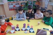 Бүген балалар "Серле кэгазь" тугәрәк эшендэ нәни куллары белэн оригами ярдәмендә Кыш бабай ясадылар.