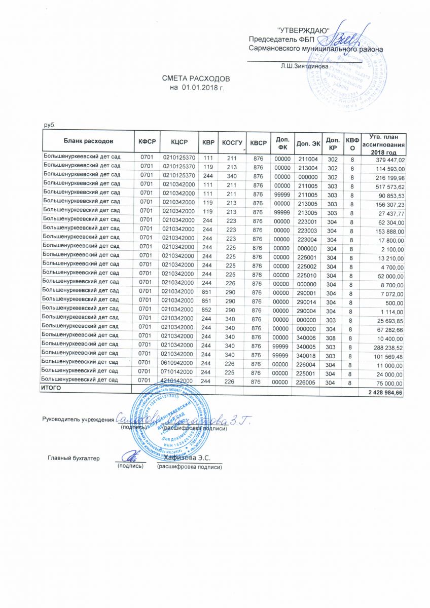 Смета 2018