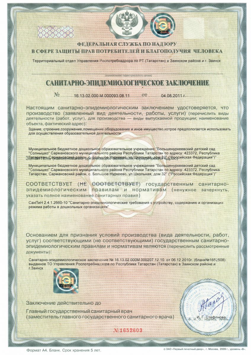 Санитарно-эпидемиологическое заключение