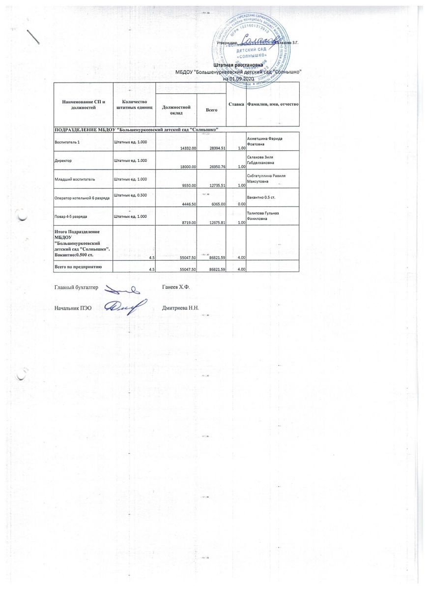 штатное расписание 2020 г.
