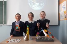 12 апреля- День космонавтики. По этом случаях учащиеся начальных классов приготовили рисунки...