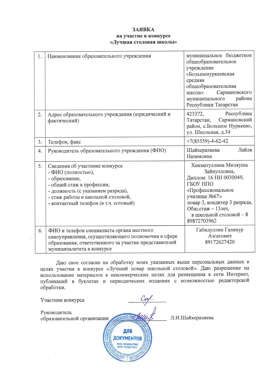 Информационная карта участника конкурса "Лучшая школьная столовая"