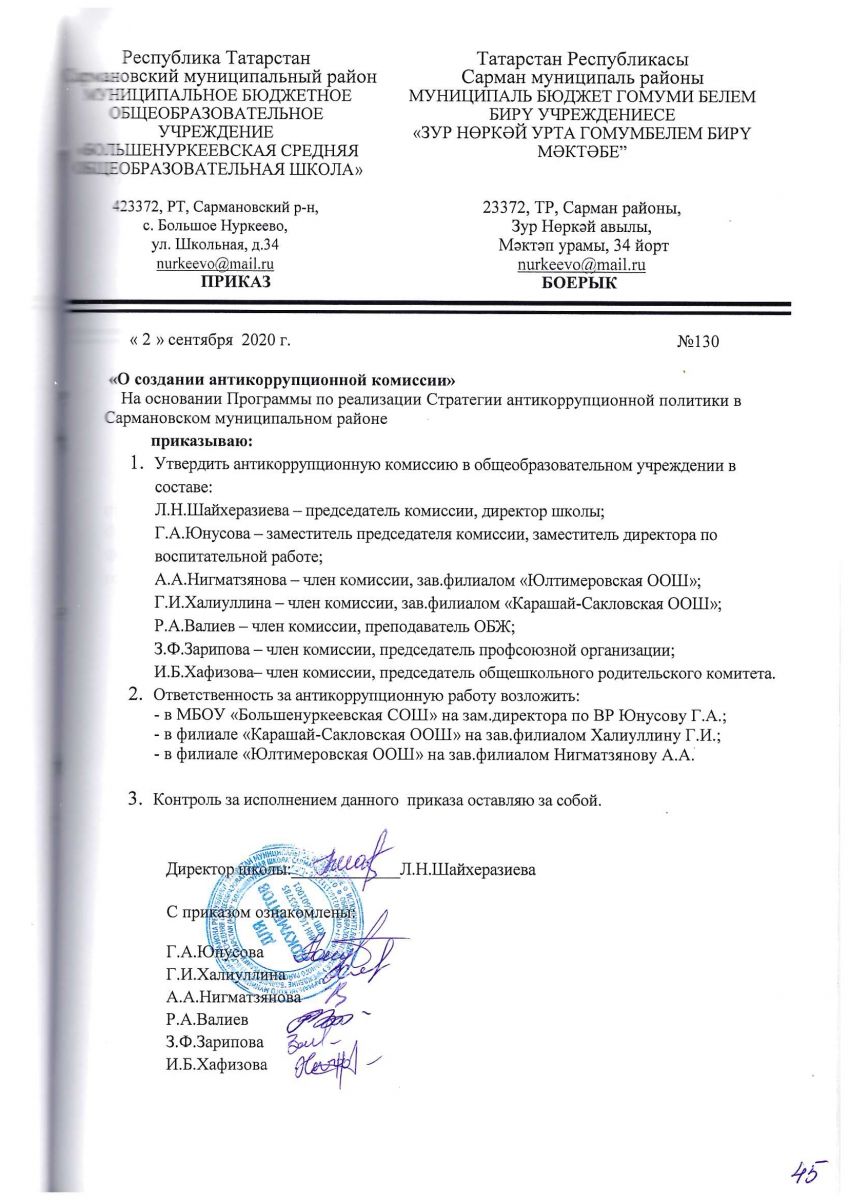 Приказ о создании антикоррупционной комиссии