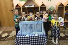В рамках "Недели театра" в средней группе провели игру-драматизацию "Теремок" с элементами кукольного театра 30.10.2019