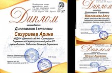 Районкүләм "Үстерешле уен" бәйгесендә безнең педагоглар Зиятдинова З.А., Сабитова Э.С., Гильфанова Л.Р., Вагизова Г.Г. призер булдылар. Амурская А.Р. сертификатка ия булды. Котлыйбыз! / В муниципальном конкурсе "Развивающая игра, посвященный к 100 летию образования ТАССР, педагоги Зиятдинова З.А., Сабитова Э.С., Гильфанова Л.Р.. Вагизова Г.Г. стали призерами. Амурская А.Р. получила сертификат участника. Поздравляем! 06.05.2019