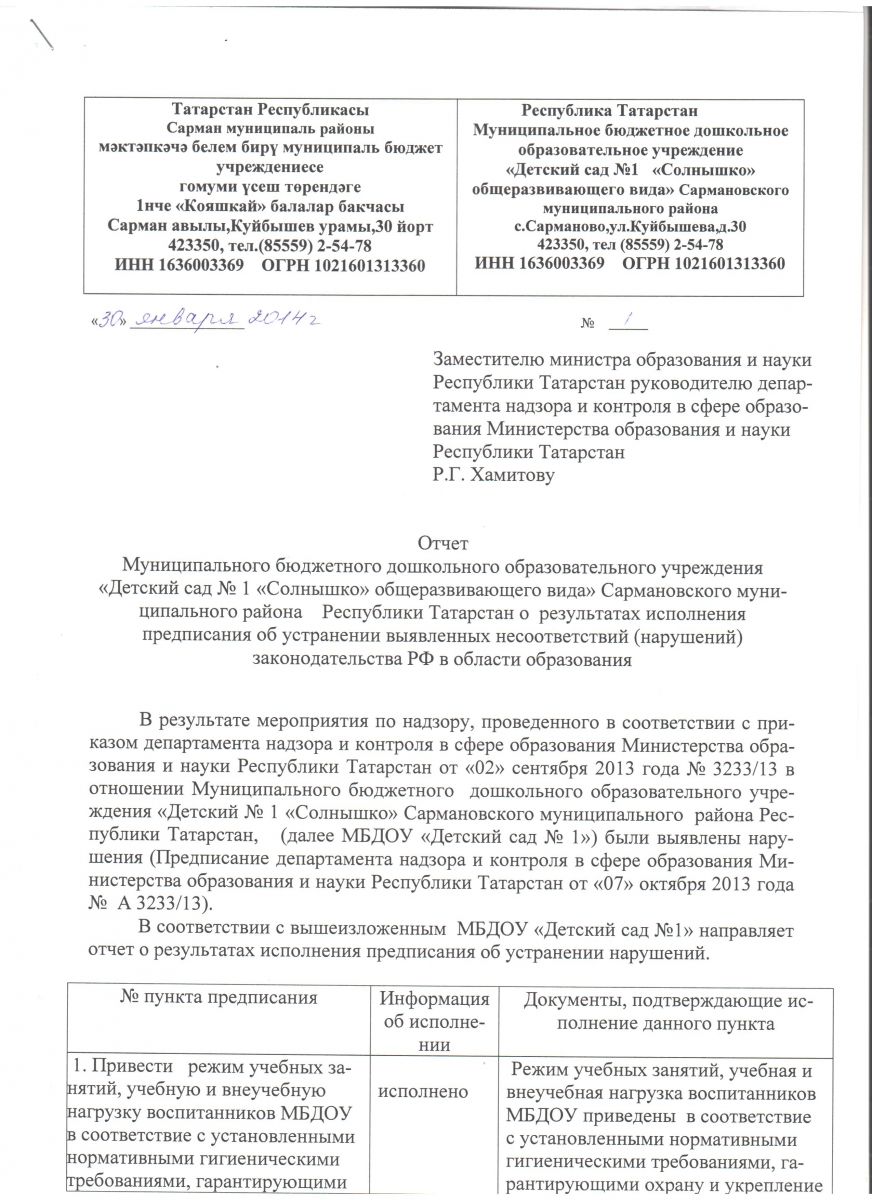 Муниципальное бюджетное дошкольное образовательное учреждение "Детский сад №1 "Солнышко" общеразвивающего вида" Cармановского муниципального района Республики Татарстан\Татарстан Республикасы Сарман муниципаль районы "Гомуми үстерү төрендәге "Кояшкай" №1 балалар бакчасы" муниципаль бюджет мәктәпкәчә белем бирү учреждениесе