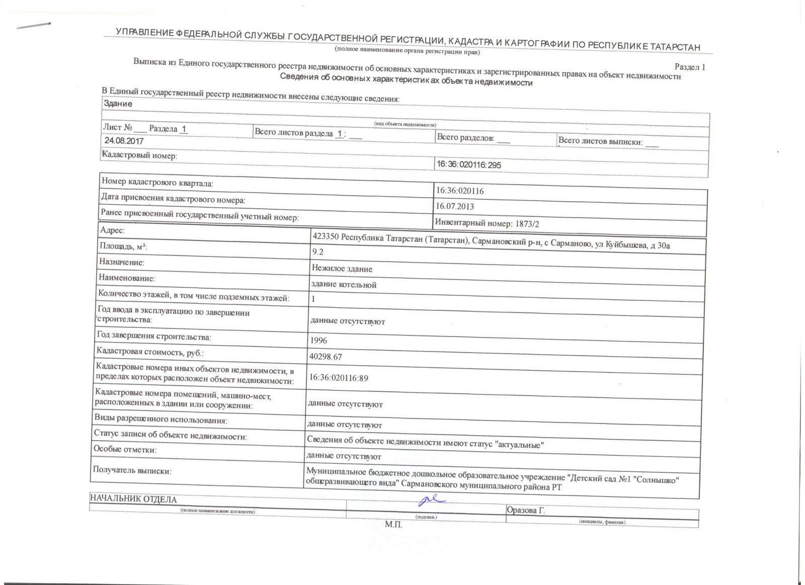 Адрес: 423350, РТ, Сармановский район. с.Сарманово, ул.Куйбышева, д.30