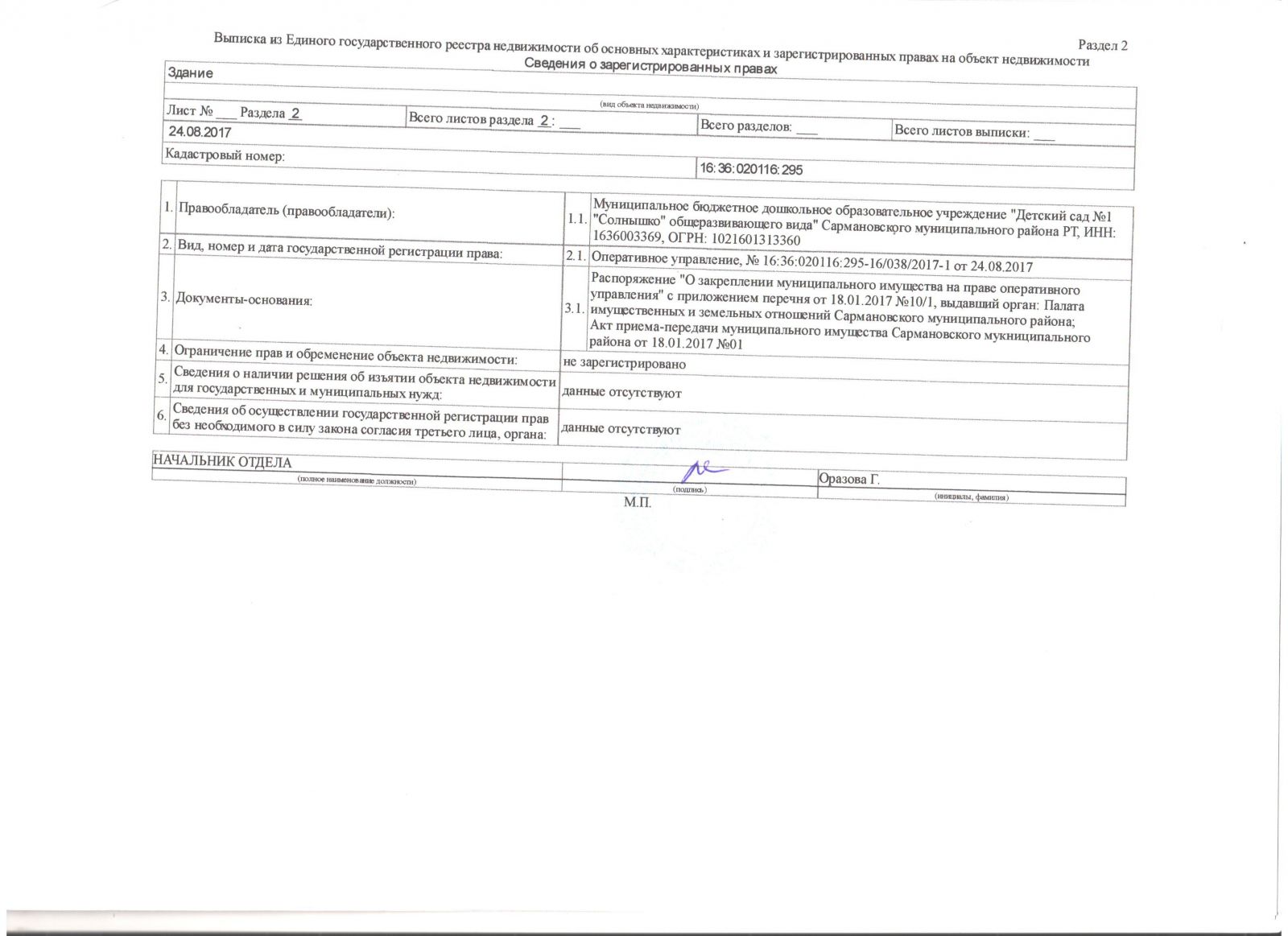 Выписка из Единого государственного реестра недвижимости