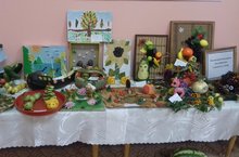 Тәрбияче В.М.Рахимова җитәкчелегендә эшләп килүче "Әвәләү серләре" түгәрәгенең кул эшләре күргәзмәсе.