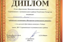 Бүген Җәлил бистәсенең 7 нче санлы «Ләйсән» балалар бакчасында Сарман муниципаль районы буенча «Ел тәрбиячесе -2017» һөнәри осталык бәйгесе узды. Район балалар бакчаларының 11 тәрбиячесе көч сынашты. Бәйгедә безнең «Лилия » балалар бакчасыннан Гайнемова Сирина Ринатовна катнашып «Иҗади тәрбияче » номинациясендә җиңү яулады. Сирина Ринатовнаны котлыйбыз һәм эшендә уңышлар телибез!!!