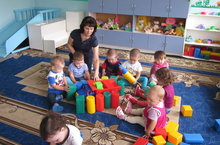 Куркынычсызлык атнасында ясле төркеме читтә калмады, Лилия Федоровна балалар белән машина төзү уены уздырды.