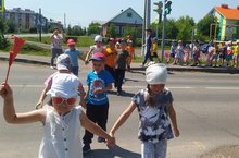 Сегодня воспитанники старшей и средней группы в целях закрепления знаний о регулируемых пешеходных переходах совершили мини-экскурсию к перекрестку со свтофором. / Зурлар һәм уртанчылар төркеме балалары өчен бүген юлда светофор төсләре буенча йөрү күнемәләрен үстерү максатыннан светофорлы юл чатына экскурсия оештырылды.