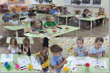 Во второй младшей группе идет кружоковая работа / Икенче кечкенәләр төркемендә түгәрәк эше. Тема: "Аквариум".Балалар аквариумга балык ябыштырып үләннәр, ташлар рәсемләделәр 21.10.2021