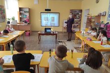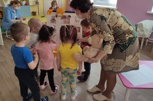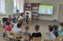 Во второй младшей группе Люция Рафаэловна провела с детьми открытое занятие по развитию речи. Дети погрузились в мир сказок, где определяли характер героев и делали вывод, что в каждой сказке добро побеждает зло./