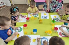 Фасхутдинова Гульфина Алмасовна провела открытое занятие в первой младшей группе по художественно-эстетическому развитию. Дети с интересом и с большим воодушевлением раскрасили сыр для мышки./ Беренче кечкеәләр төркемендә Гөлфинә Алмасовна балалар белән тычканга бик матур итеп сыр ясадылар