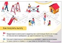 Как получить льготу: 1. Предоставьте в управление образования свидетельство о регистрации брата или сестры по тому месту пребывания, где зарегистрирован наш воспитанник. 2. Если место фактического проживания не совпадает с адресом регистрации, то нужно принести справку о составе семьи.
