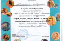 Наши воспитанники подготовительной группы Закирова Лейсан и Миннебаева Сильвина стали дипломантами международного конкурса "СОМиК"и удостоились звания "Абсолютный победитель" и "Призер".Поздравляем/Бөтендонья "СОМиК" проектында безнең кызларыбыз җиңү яуладылар.Котлыйбыз!