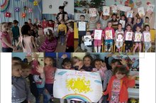 В "День Ребенка"наши воспитатели провели с детьми различные мероприятия.Воспитатели второй младшей группы вместе с музыкальным руководителем Фаттаховой Г.Ф. организовали хороводные игры, спели песни и станцевали. Средняя группа совместно с воспитателем Миннуллиной Р.К. сделали коллективную работу "Солнышко", старшая группа нарисовала портрет. Затем все вместе организовали различные игры с мячами, шарами. Было очень весело./ Балаларны яклау көнендә безнең балалар бакчасында төрле уен чарарлары узды: икенче кечкенәләр ңырлап, биеп күңел ачтылар, уртанчылар бергәләп "Кояш" рәсеме ясадылар, зурлар үзләренең портретларын ясап әти-әниләрен сөендерделәр. Бакча гөр килде.