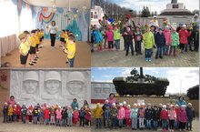 Бүген зурлар төркемендә Арефьева Римма Ханифовна Бөек Ватан сугышында һәләк булган солдатларга багышланган ярыш уздырды. Шулай ук барлык бакчадагы балалар белән "Фронт хатлары" дип язылган видеоязманы карадык. Аны Сарман туган якны ойрэну музей хезмәткәрләре әзерләп бүләк иттеләр, чөнки ул видеоязмада безнең балалар да актив катнашалар. Ахырдан, балалар белән җыелышып, һәйкәлгә чәчәклэр салдык./ Сегодня в ДОУ мы провели спортивный праздник, посвященный ко Дню Великой Победы, его организовали и провели воспитанники старшей группы вместе с воспитателями и инструктором физической культуры Арефьевой Р.Х., музыкальным работником Фаттаховой Г.Ф..После мероприятия все группы возложили цветы на мемориале.