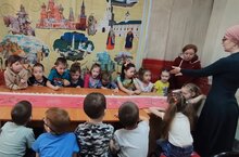 Мәктәпкә әзерлек төркеме район китапханәсенә экскурсиягә барды. Анда туган як турындаәңгәмә узды. Викторина сорауларына җавап биргәндә балалар бик актив булдылар. Татарстанның башкаласы, шәһәрләре, елгалары. язучылары турында белемнәрен күрсәтә алдылар. Соңыннан китапханә белән танышу узды/ Дети подготовительной группы посетили районную библиотеку.