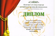 Казан шәһәрендә "Сәйяр" балалар һәи яшүсмерләр республика театр фестивалендә җиңүчеләрне бүләкләү тантанасы узды. Безнең балалар бакчасы 1 нче этабында катнашканы өчен диплом белән бүләкләнде.