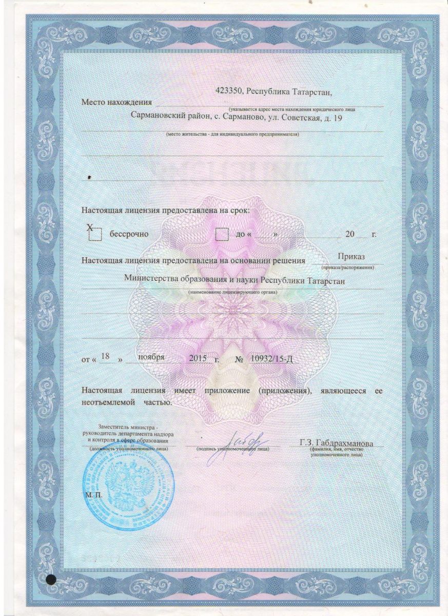 Адрес: 423350, Республика Татарстан, Сармановский район, с. Сарманово, улица Советская, 19
