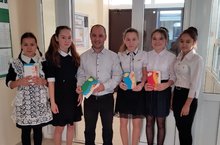 Сегодня в школе с утра царила праздничное атмосфера. Ученики поздравили учителей с профессиональным праздником и дарили подарки сделанные собственными руками.