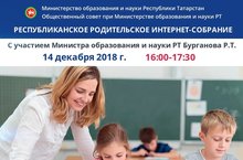 Во исполнение плана работы Министерства образования и науки Республики Татарстан 14.12.2018 с 16.00 до 17.30 состоится Республиканское родительское интернет-собрание «Этика педагогических отношений».