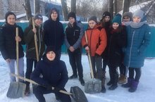 В целях помощи пожилым людям юнармейцы помогли ветерану Арслановой по хозяйству. Ученики 9 класса убрали снег и прокопали тропу до дома.