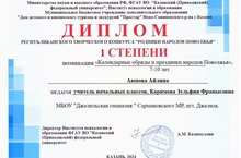 Ученица 3б класса Аюпова Айлина стала лауреатом l степени в республиканском творческом конкурсе "Родники народов Поволжья"!