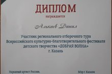 Алькаев Данил - дипломант фестиваля "Добрая волна" 19.01.2021