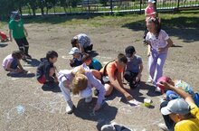 1 июня в честь Международного дня защиты детей был организован конкурс рисунков на асфальте "Мир детства".