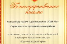 Коллектив нашей школы награжден МКУ "Управление образования" ИК МО "Лениногорский муниципальный район" за активное участие и подготовку победителей и призёров зонального конкурса "Красота родного края".