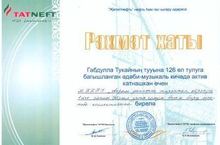27 апрелҗ көнне Г. Тукайның туган көненә багышланган әдәби - музыкаль кичәдә актив катнашып, безнең мәктәп рәхмәт хаты белән бүләкләнделәр