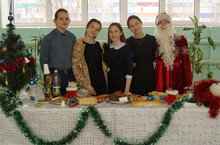 Сегодня в школе состоялась Новогодняя ярмарка. Учащиеся с 1 по 11 класс с удовольствием приняли участие, принесли угощения, украсили столы.