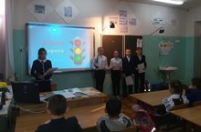 9 октября ученики 5а класса Низамова Д., Сулейманов М., Хафизова К., Сафиуллин Р., Латифуллина А. под руководством классного руководителя Халиковой Л.А. в 1 а классе провели классный час о правилах дорожного движения «Добрая дорога детства».