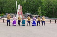 Мәктәп яны лагереның бер төркем тәрбияләнүчеләре совет сугышчыларына һәйкәл янында "Беркем дә онытылмады, бернәрсә дә онытылмады» митингында катнаштылар.