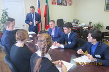 09 февраля в администрации поселка президенты школ встретились с главой поселка Бадиковым Л.М., где участвовала и наш президент парламента школы Газизова Э..