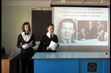 28 апреля в Сармановской гимназии состоялась научно- исследовательская конференция для учащихся «Юнфиз». Ученицы 8а класса Газизова Эльвира и Валеева Лилия под руководством учителя татарского языка и литературы Шайдуллиной Л.К. и учителя физики Халиковой Л.А., представив работу «Участие наших земляков в освоении космоса», заняли второе место.
