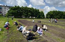Бүген хезмәт лагерында укытучылар укучылар белән берлектә бакчада эшләде, эштән соң спорт белән мавыктыргыч вакыт үткәрделәр, ике командага бүленделәр һәм волейбол уйнадылар.