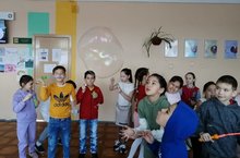 Сегодня учащиеся начальных классов пришли в школу нарядные. Во время перемен дружно пускали мыльные пузыри, так же составили книги «Добрые пожелания».