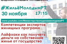 Чтобы подключиться к трансляции прямого эфира #ЖильёМолодымРТ достаточно зайти в 17.30 30 ноября на YouTube канал Минмолодежи РТ по ссылке