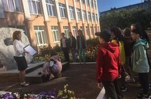 3 нче сентябрьдә, мәктәбебезнең 50-еллык юбилее уңаеннан, 4 А сыйныфы укучылыры Зиннатуллин Илдар Азат улы һәм Шакирова Айназ Инсаф кызы белән очраштылар.