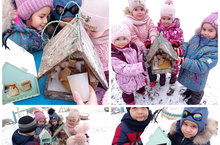 Вот и дети средней группы решили порадовать синичек и всех зимующих птиц. Заранее развесили кормушки на участке, приготовили угощение: семечки, просо, овес, несоленое сало. В группе провели развлечение, посвященное «Синичкиному дню»: читали стихи, отгадывали загадки о птицах, играли, рисовали, порассуждали о необходимости бережного и заботливого отношения к пернатым друзьям. Создали коллективную аппликацию. На прогулке разложили угощение по кормушкам. /