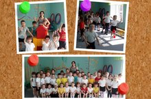 Программа «Веселых стартов» была довольно насыщенной. Первым заданием было представление команд. Оно было задорным и рифмованным. Командам были предложены занимательные, иногда очень непростые конкурсы с бегом, прыжками на мячах, перетягивание каната дети показали свои спортивные навыки.