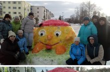 Зимой у детей меньше возможностей поиграть на воздухе, но зато есть снег, которому дети всегда рады. Играть в снежки, лепить снежную бабу, делать скульптуры из снега – это весело. А мы слепили колобка, пусть радует всех детишек улыбкой и веселым настроением.