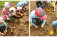 Мы в песочнице играем,Лепим гтортик из песка,Увлеклись, не замечаем,Что носки полны песка.Сделали тортики из песка дети старшей группы.