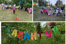 В нашем детском саду стало традицией проводить праздник Сабантуй. В празднике приняли участие все дети. Ребята показали свою ловкость и умения в национальных играх «Эй, дружок, попади в горшок», «Бег в мешках», «Бег с ведрами», «Перенеси яйцо в ложке», «Перетяни канат». Самым сложным для ребят, оказалось, попасть по горшку с закрытыми глазами, но и с этим испытанием они справились! А затем вместе воспитанники водили хоровод и танцевали под национальную музыку