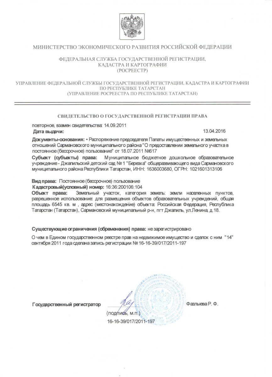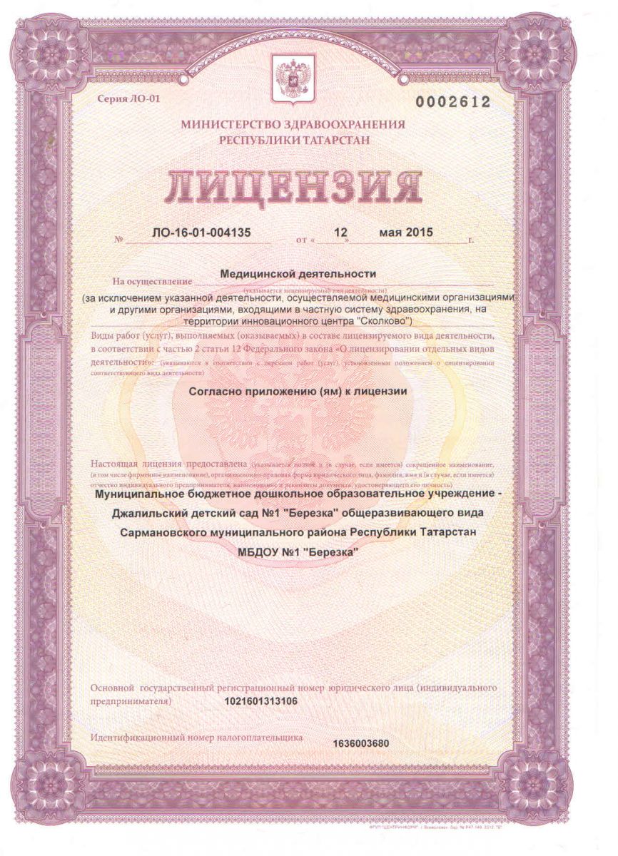 Муниципальное бюджетное дошкольное образовательное учреждение - Джалильский детский сад №1 "Березка" общеразвивающего вида Сармановского муниципального района РТ / Сарман муниципаль районы муниципаль бюджет мәктәпкәчә белем бирү учреждениясе - Җәлил бистәсенең гомуми үсеш төрендәге 1-нче "Каенкай" балалар бакчасы